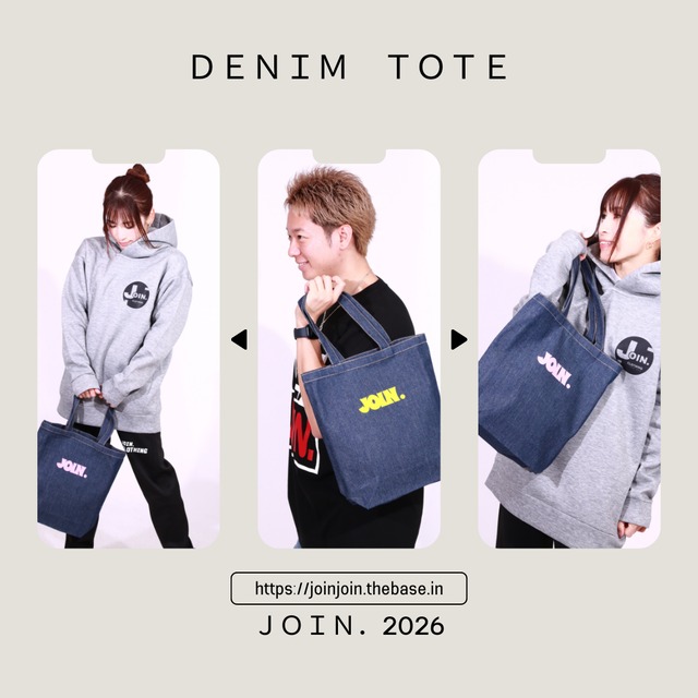 JOIN.DENIM TOTEBAG 定価2650円(税込) 本体サイズ 本体/約W350×H360×D110(mm) 持ち手/約W25×H500(mm) 容量 約9L 素材 コットン